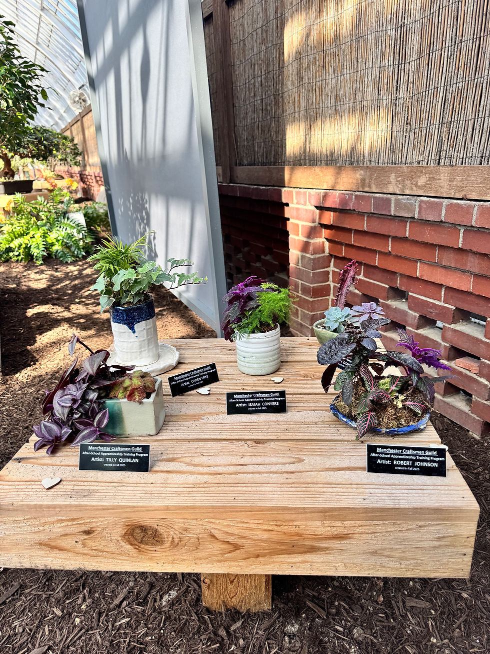 In collaboration with Phipps Conservatory, these student-made planters have been integrated directly into the Orchid and Tropical Bonsai Show, one of Phipps’ most beloved seasonal exhibitions. Surrounded by vibrant blooms, intricate bonsai, and lush greenery, the ceramics take on a new life—inviting guests to appreciate the synergy between craftsmanship and horticulture.